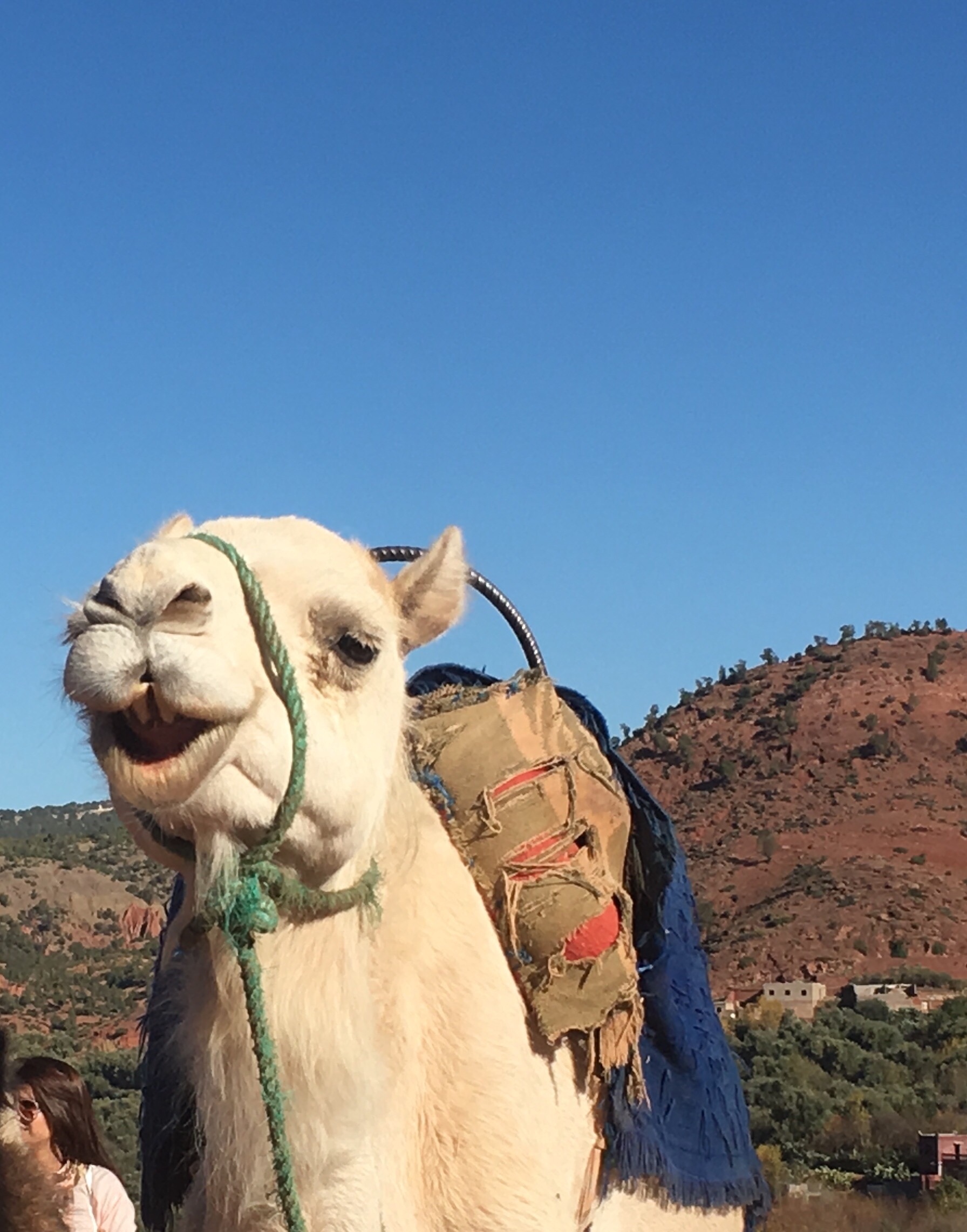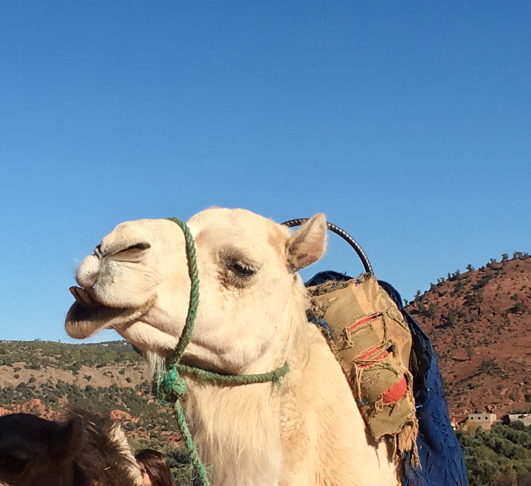 You just know that this camel is a good storyteller for his face is droll. His stories will have a world weary cynicism and a fair amount of bad language, because his life is of the “you have to laugh” variety. He has the misfortune to be a prop camel along the daily route for caravans of tourist buses visiting Berber villages in the foothills of the Great Atlas Mountains. Each day he must stand till footsore (and no one likes a sore camel toe) having his photo taken with and by sundry Europeans, and providing some of them with opportunities for swaying video footage of barren hills, and a lofty shag pile seat. “Prickly pair in from South London today–real Berber figs” he will tell his friends over a Camel cigarette and a trough of mint tea (drink it while you can) tonight . ” I told them I was allergic to willow and sneezed all the way down the track. Hump-shaking. Snot everywhere. Feet and feet of phlegm. She thought she’d be sick with all the jiggling and he dropped the lens cap for his Minolta. I stood on it. Then I stopped to graze on some absinthe and told them it made me hallucinate sometimes, especially when I mix it with Aloe Vera like I did this morning. Told them that last week I’d charged a mosque–not many dead, but created a few more cripps to beg outside the Bahia Palace. Said I mistaken a call to prayer for a bad George Michael cover. May our holy Fat Back Father give rest to his soul I said, but I won’t have that man mocked. Gets my back up. Then I sneezed again before quickening to a trot and turning sharply towards the shop that sells tagines and tea glasses,singing Wake me Up before You Go Go at the top of my lungs. South London asked to get off pretty quick after that, and there were no more takers. Fondouk ’em. Fondouk em all”