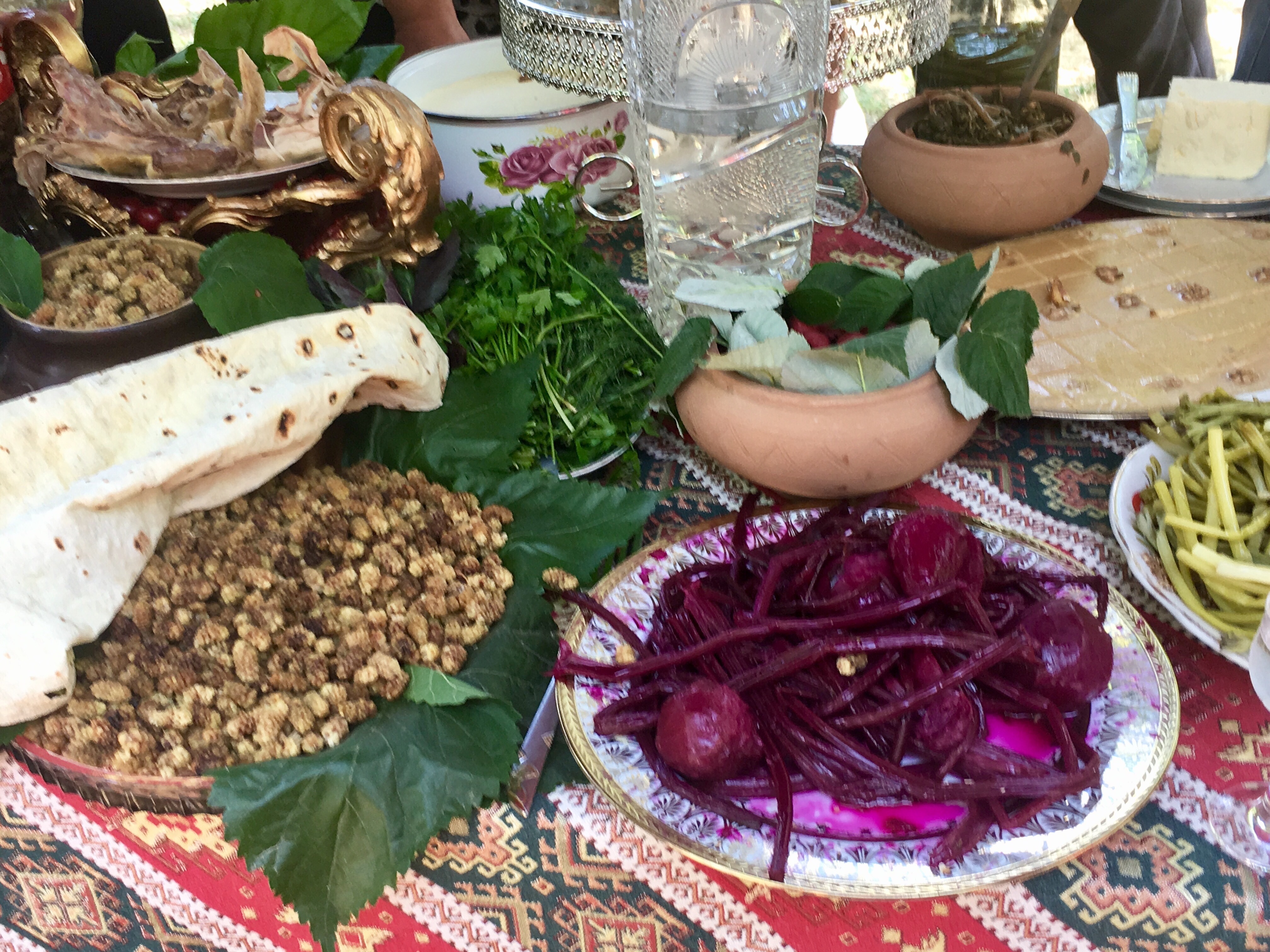 Three teenage boys rode by on a hijacked donkey. Vodka may have been involved. An Armenian grandfather showed off his overdressed baby to this American grandmother. A Japanese American with a man bun sampled the green beans, fish dolma and red currants. We ate cherries and talked to a Czech tourist. 10-year-old boys in itchy vests of Armenian design got ready to dance. The duduk player blew out his cheeks one last time. His instrument, uniquely Armenian, sounds like a mix between a gazoo and irish pipes. A beautifully melancholy sound.