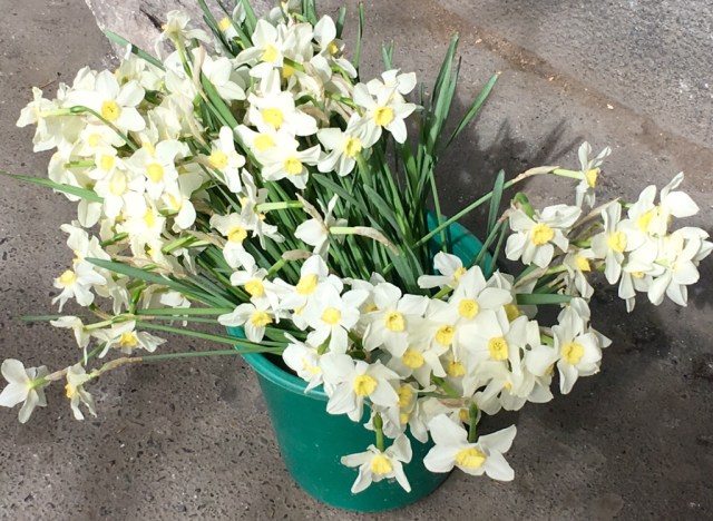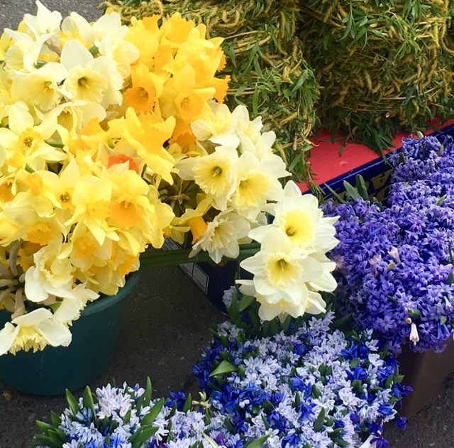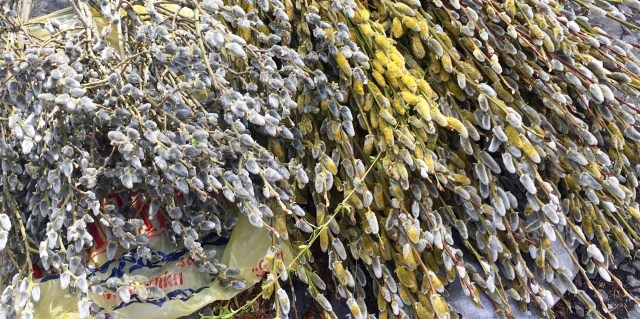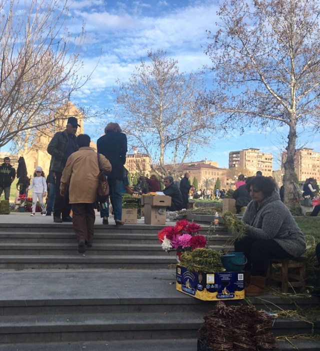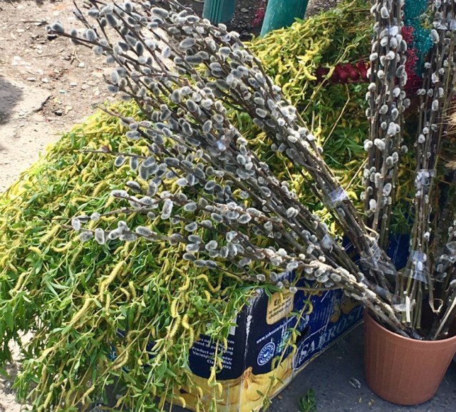 In front of the cathedral old women sold coronets of mimosa and forsythia, and long rods of pussy willow. The young women clamored for the crowns, knowing they’d look cute. There were buckets of daffodils and bunches of hyacinth and scilla. Inside the church, glorious singing, clouds of incense, and people celebrating the Palm Sunday communion that marks the end of Lent. The place was packed but no one seemed to stay for the whole service. They brought their kids for a blessing, lit a candle or two, and then took off as the next shift arrived. I admired the altar, unveiled for the first time in nearly forty days, and kept my eyes peeled for palm fronds. But palm leaves don’t seem to be a thing at the start of Holy Week in Armenia. You’d think they’d bring them in from Iran along with the dates…