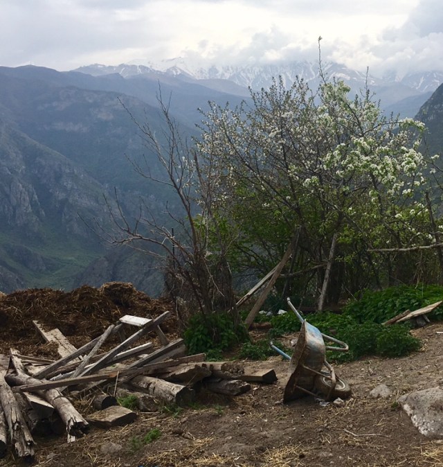 I turned up to my village English club this afternoon to find students sadly lacking. “Voch inch” I said to myself like a good Armenian ” it is a lovely day for a walk”. I picked my way down the stony hill admiring the light over the gorge. “Amerikatsi”. An old woman sitting on a rock outside her gate sounded the general warning.