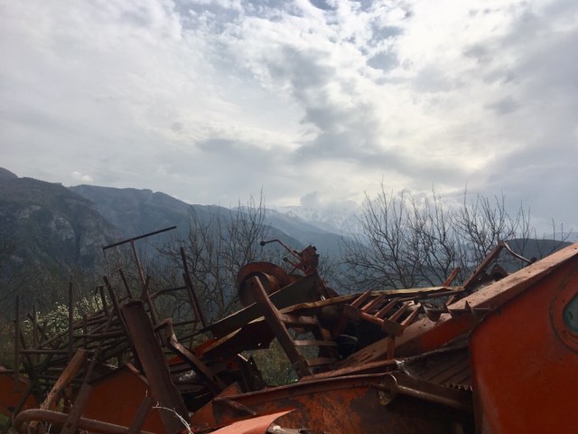 I continued my walk past a donkey saddled for work, a cow or two grazing by the roadside and another couple of cows sitting in the sun. A woman was sitting on her step shelling walnuts.