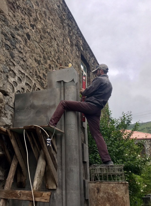The new government might want to turn its attention to health and safety regulation too. Outside a small hotel in Goris a stone sculptor plied his trade chiseling and chipping at a gateway from a perilous position on top of piled crates.