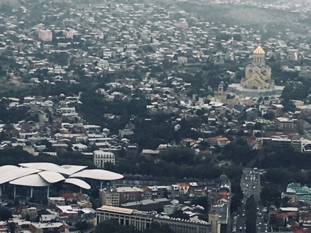 I got over this scruple by the time we reached Vino Underground, a wine bar on Galaktioni Street, near Freedom Square. Dark and dangerous steps lead down into a cavern lined with Georgia’s finest wines. Once you’ve made the perilous descent it seems wise to stay all afternoon. Our wines were served by a knowledgeable young woman from Western Massachusetts who came to Georgia four years ago for a short visit. She fell in love with the language, the wine and for all I know a Georgian. She is fluent in Georgian and in the language of wine. We found our own language proficiency increased with lubrication. We were there for hours. We had dinner at Ezo, a family run restaurant but a stagger from the wine bar. I ate beans with thyme, and an aubergine dish. Both delicious. I dipped my Georgian bread in the fabulous walnut sauce that surrounded the chicken. The wine here was red, homemade, and served in large jugs. We had several. Our tour, which was meant to end at 6pm, wrapped up around 10:30pm with an exchange of hugs and social media handles.