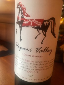 By now it was legitimately time for a glass of red. I had Papari Valley. Read the link if you want all the Kekhati, qvevri, Saperavi, microclimate information but trust me when I say that this is a wine for the full-bodied. It is 16.6 % and I loved every jammy mouthful. Expect to have to brush your tongue harshly before you go to bed, and then again the next morning.