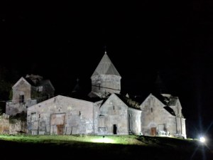 We had a balcony in Gosh and it seemed like a good idea to order a bottle of wine to enjoy there before dinner. Bistro-owner Anahit took our order for a bottle of dry red wine without comment. We watched the sun go down as she brought glasses, giving them an elaborate polish before she set them down. A few minutes later we saw a five year old running across the square beneath us carrying a newly purchased bottle in front of him as though it were an outsize rolling pin. It was rose. It was warm But least it was dry. We drank it.