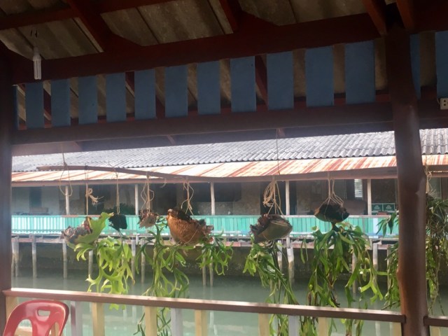 I had seen the sign for Dan Mai seafood from the main road when we passed in our songtheaw the other day. Today seemed a good time to check it out. The girls had abandoned me for a much ritzier beach, and were making their own dinner plans. The late afternoon was reasonably cool. I decided to walk.
