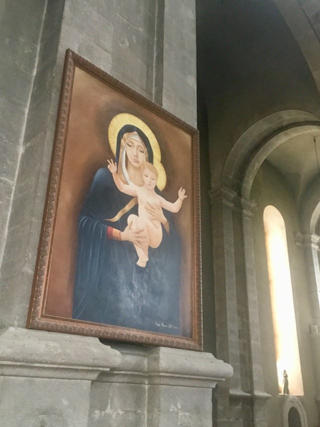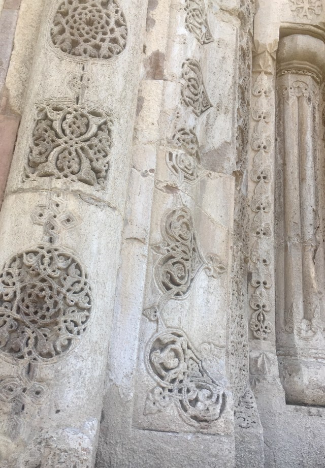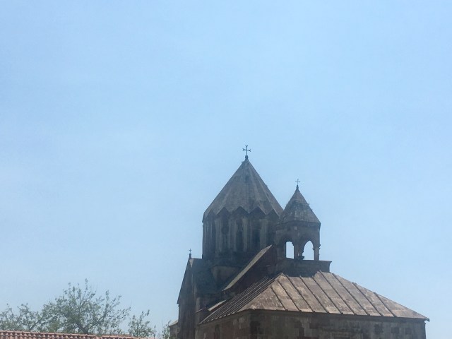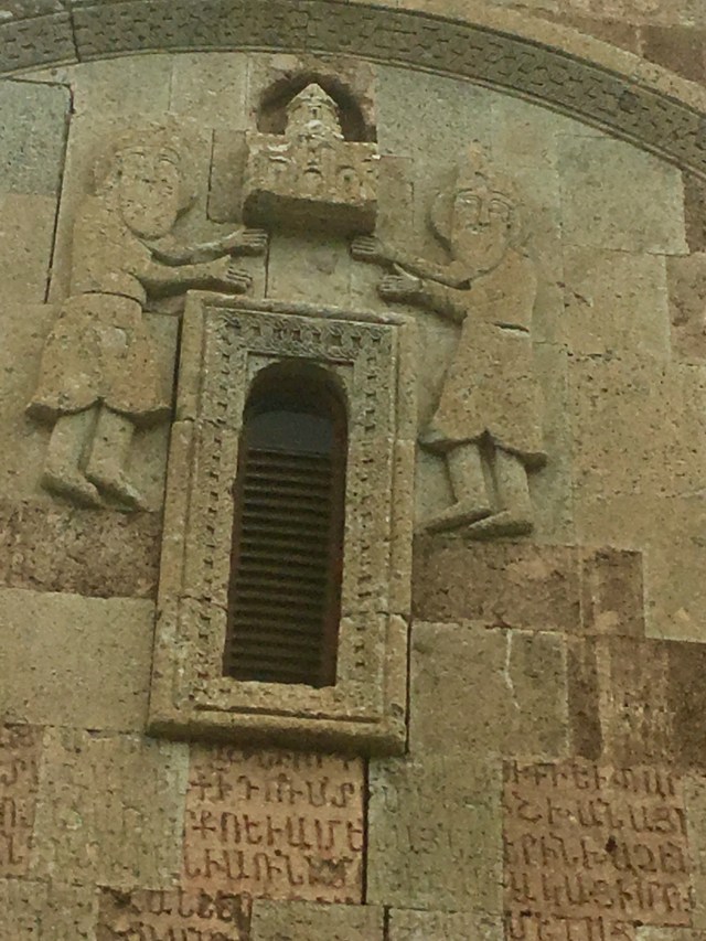 At the top of the church is a stone carving depicting the church’s builder holding up the structure through brute force. He couldn’t have known how arduous his centuries-old task would be. The church is surrounded by a fortress wall and has been attacked many times by marauding Russians, Persians and Turks.
